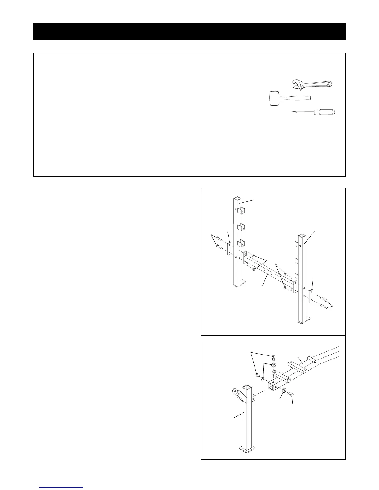• As you assemble the weight bench, be sure that