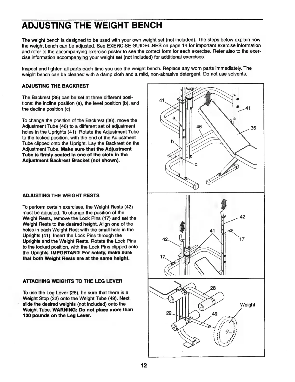 Weider 150 - Adjusting the Weight Bench; Adjusting the Backrest