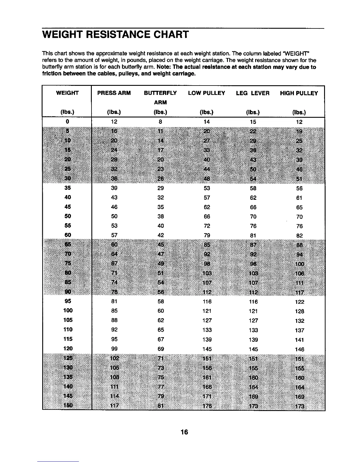 This chart showsthe approximateweightresistanceat each weight station.The column labeled =WEIGHT"