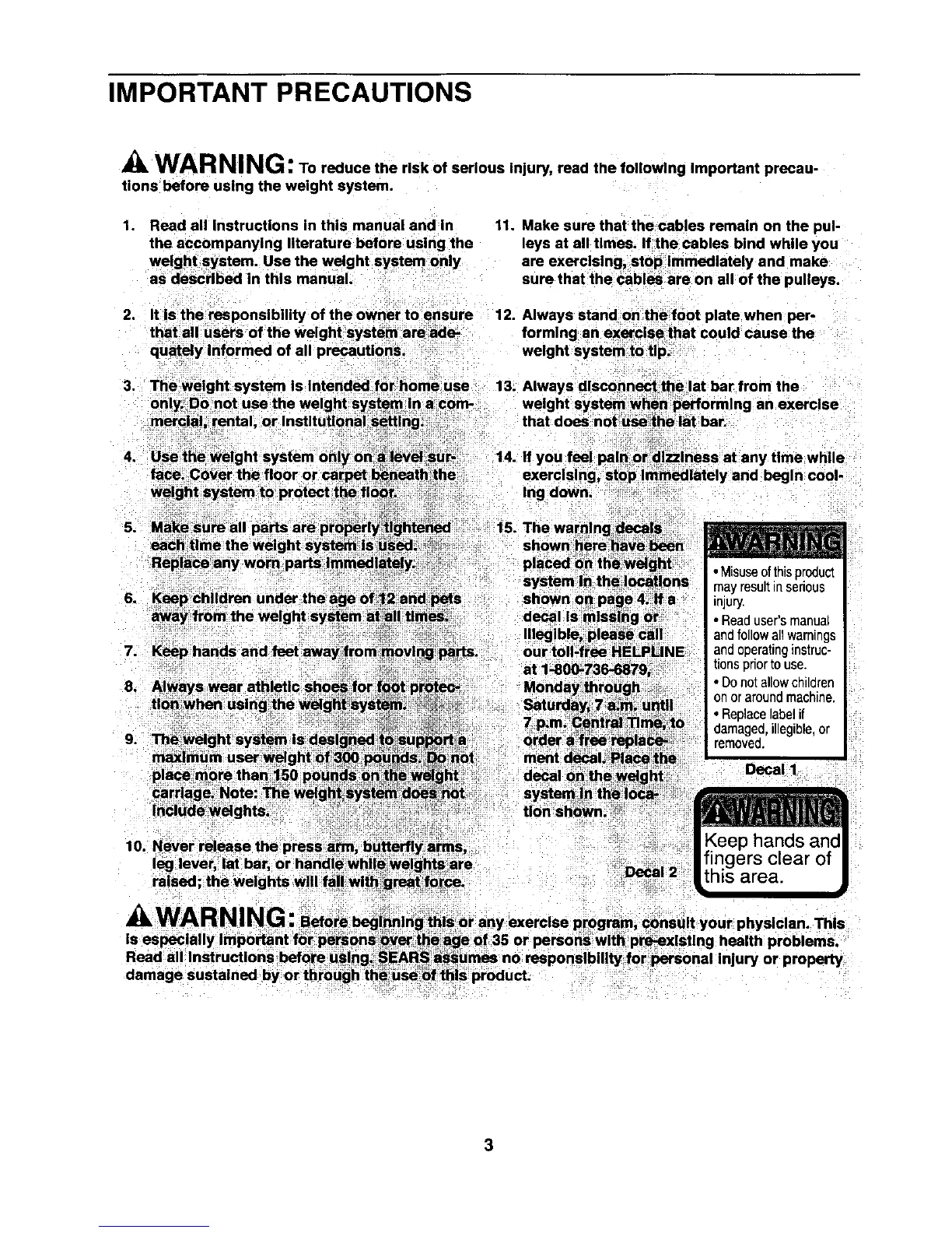 3. The weight system Is Intended forhome use 13. Always disconnect the lat bar from the