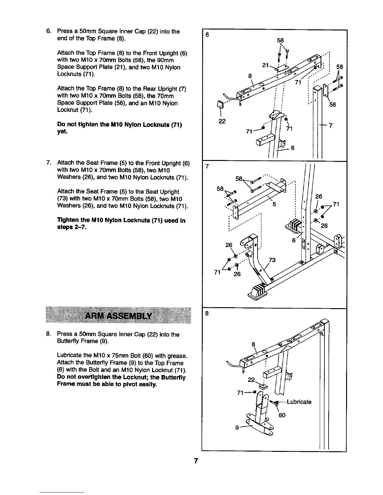 7. Attachthe Seat Frame (5) to the Front Upright(6)