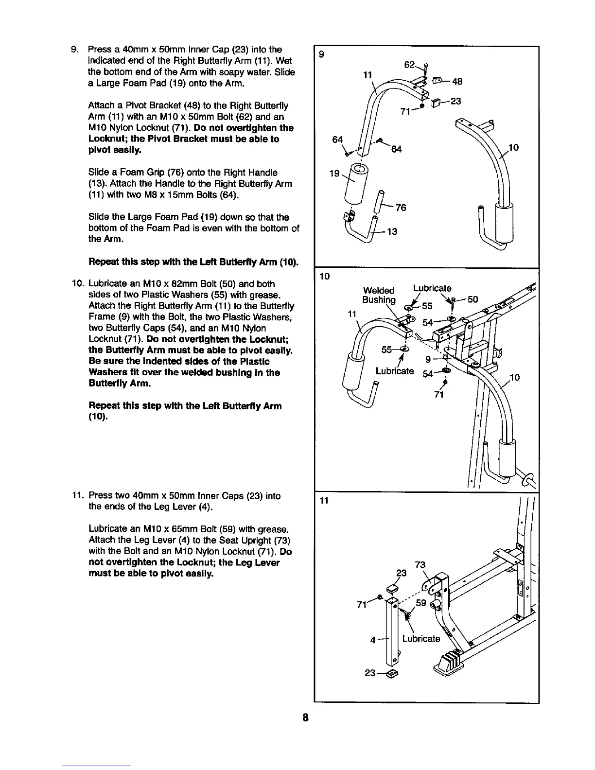 M10 Nylon Locknut(71). Do not overtlghten the