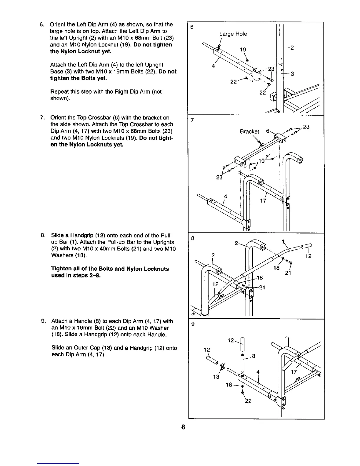 9. Attach a Handle (8) to each Dip Arm (4, 17) with