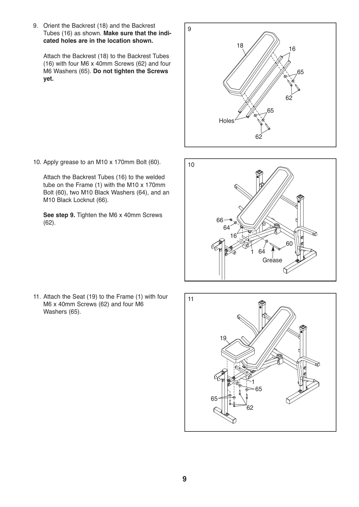 9. Orient the Backrest (18) and the Backrest