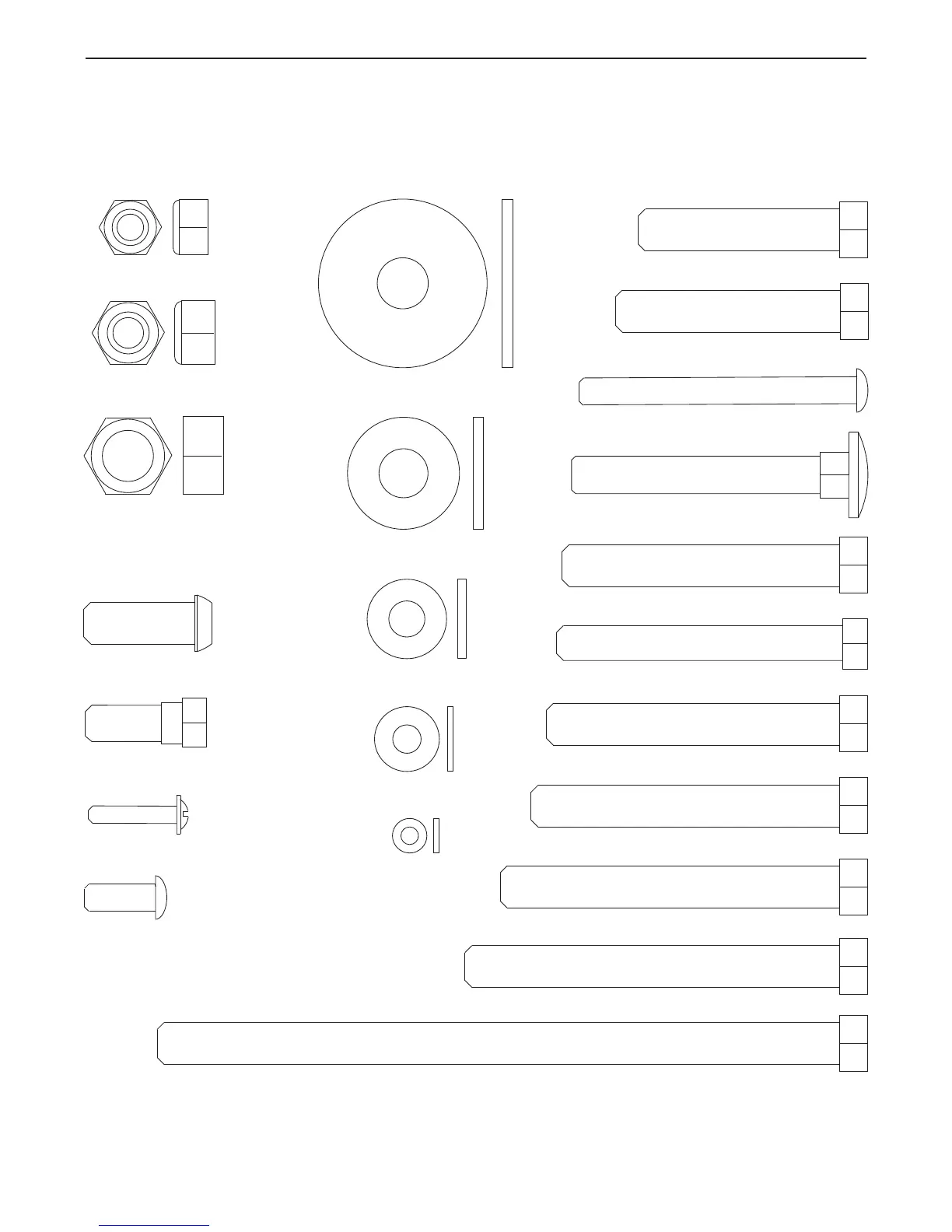 Refer to the drawings below to identify small parts used in assembly. The number in parentheses by each draw-