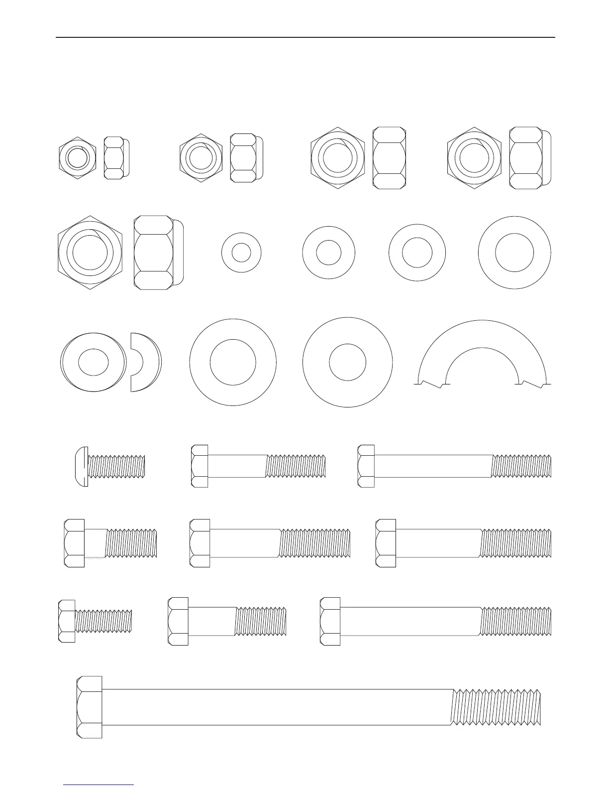 Refer to the drawings below to identify small parts used in assembly. The number in parentheses by each draw-