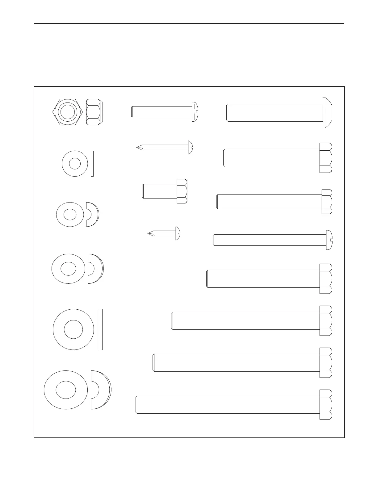 This chart is provided to help you identify the small parts required for assembly. The number in parentheses