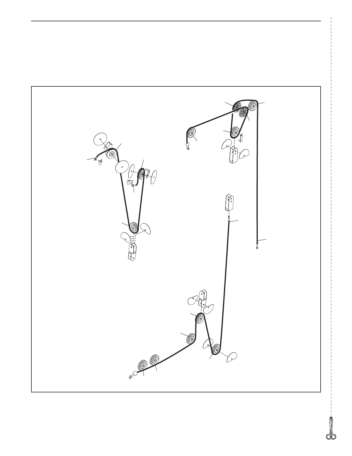 of that cable. Cut along the dotted line, and refer to this diagram while you assemble the cables and the pulleys. If