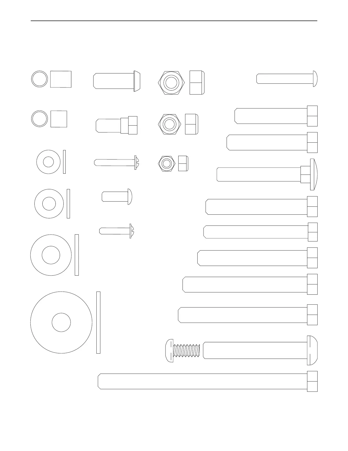 Refer to the drawings below to identify small parts used in assembly. The number in parentheses by each draw-