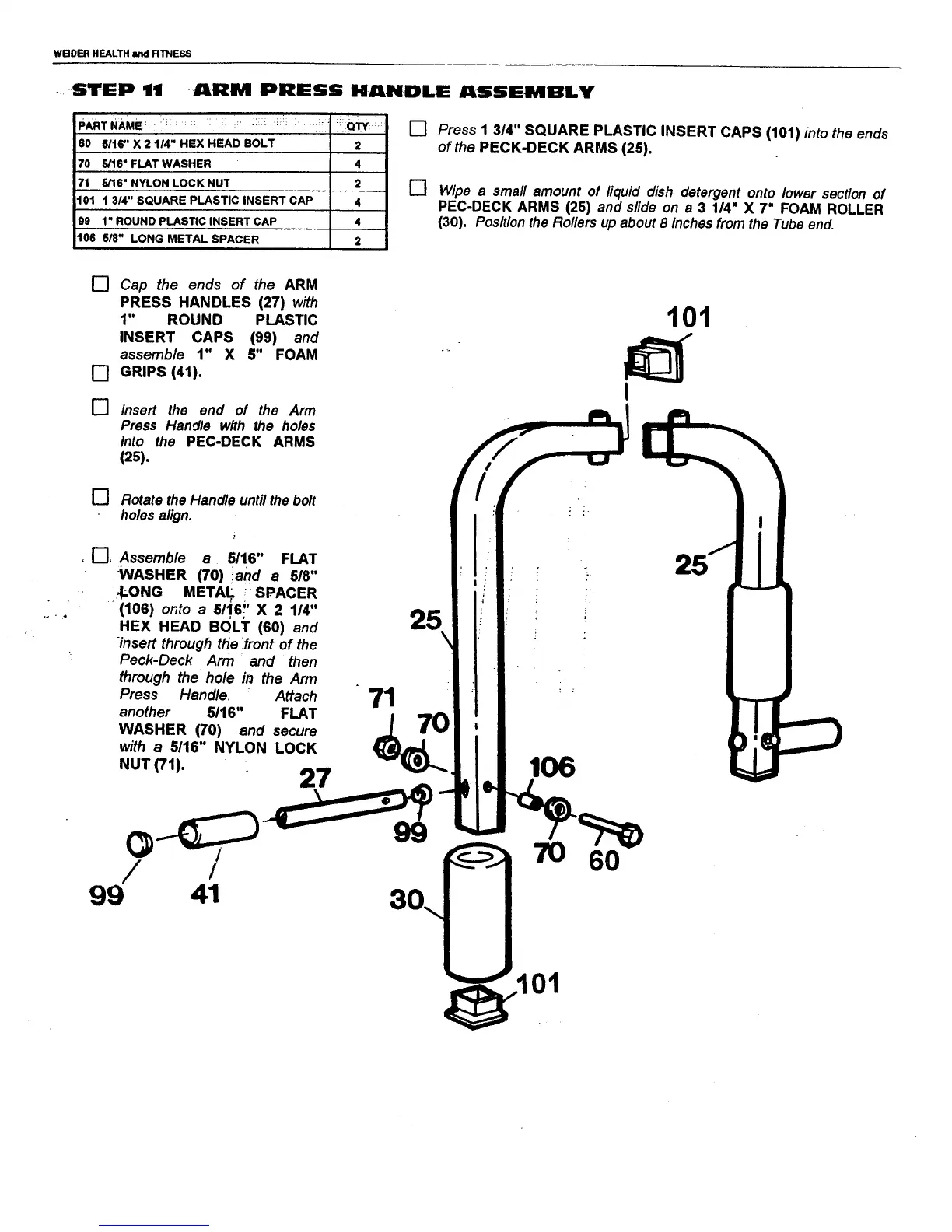 Weider 70032 - Step 11: Arm Press Handle Assembly