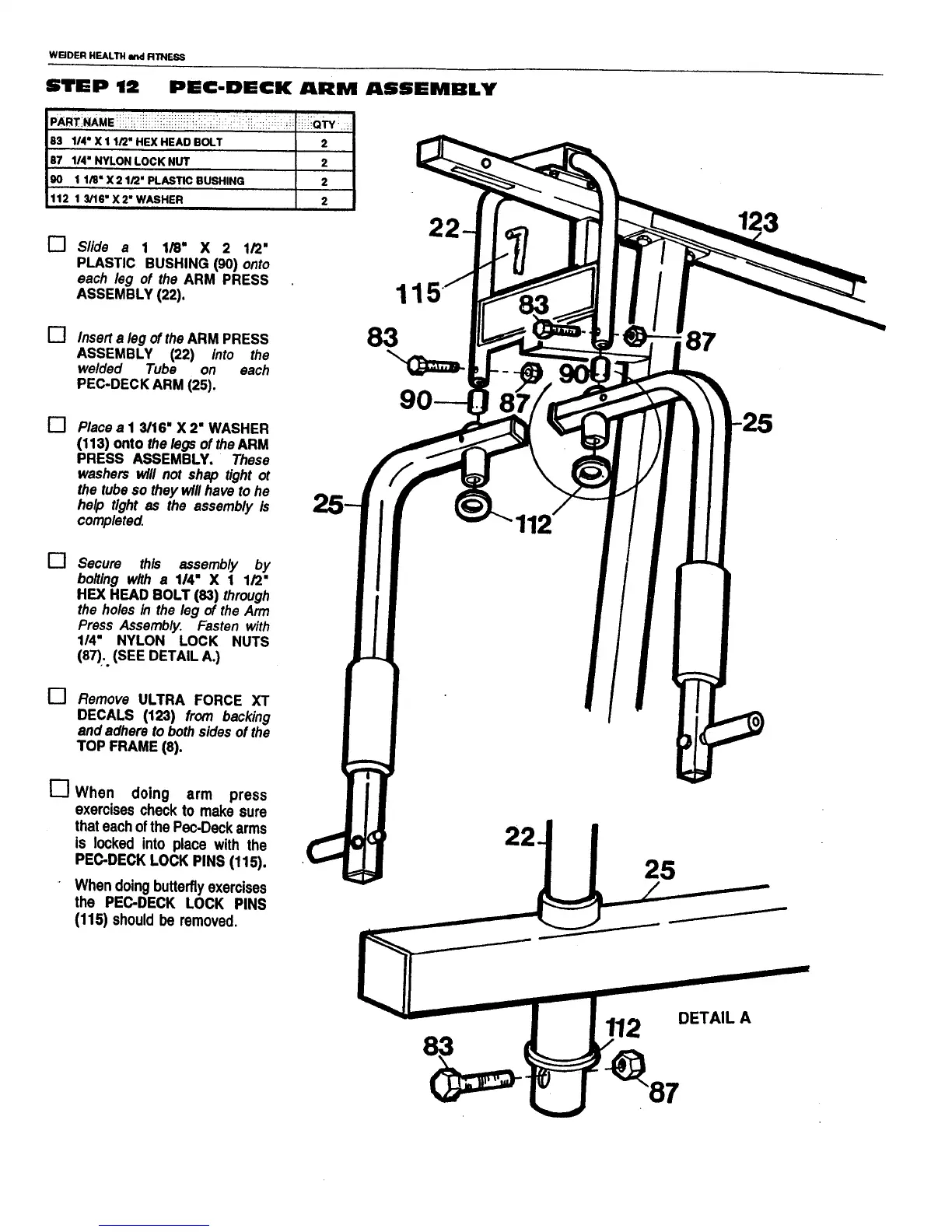 Weider 70032 - Step 12: Pec-Deck Arm Assembly
