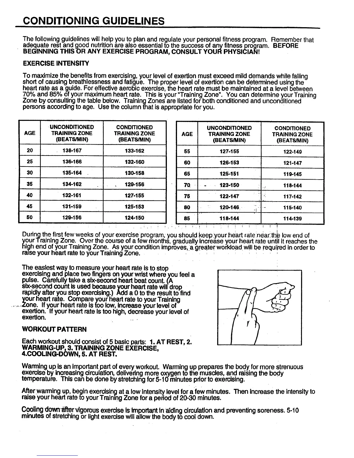 Weider 70032 - Conditioning Guidelines; Exercise Intensity and Training Zone