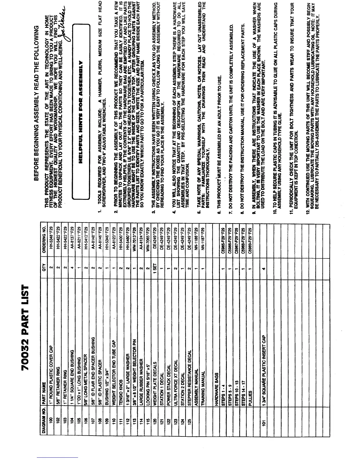 Weider 70032 - Before Beginning Assembly