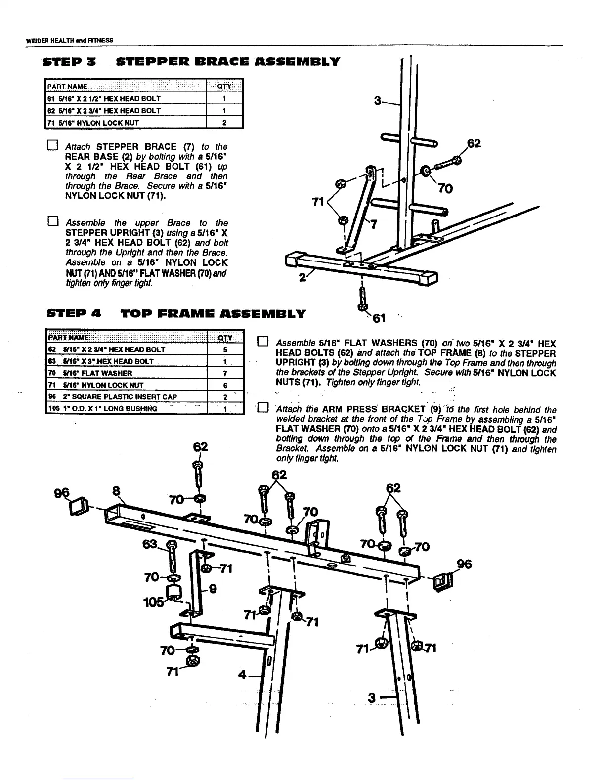 Weider 70032 - Step 3: Stepper Brace Assembly; Step 4: Top Frame Assembly