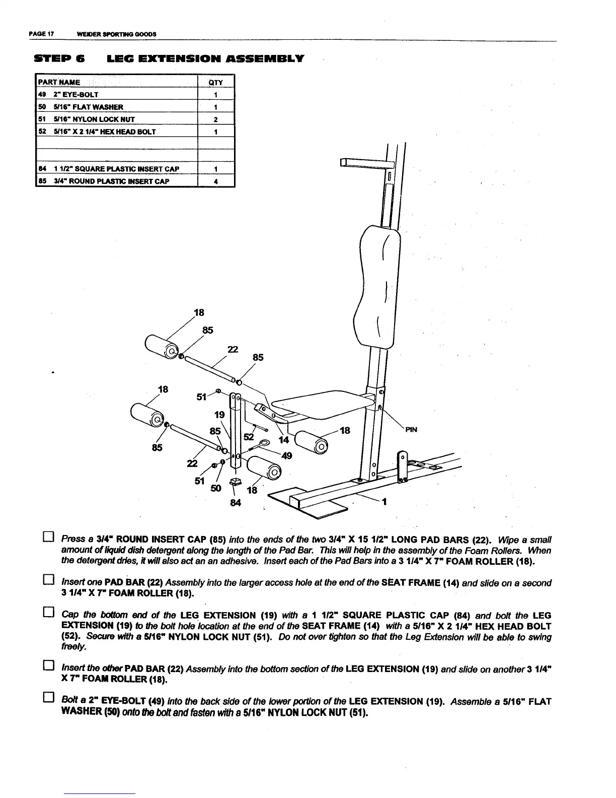 Weider 70193 - Leg Extension Assembly