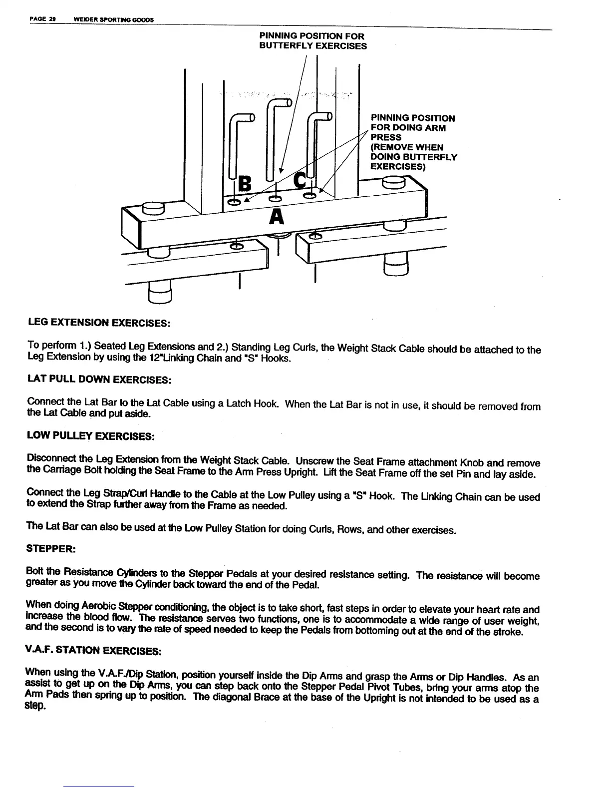 Weider 70193 - Leg Extension Exercises; Lat Pull down Exercises; Low Pulley Exercises; Stepper