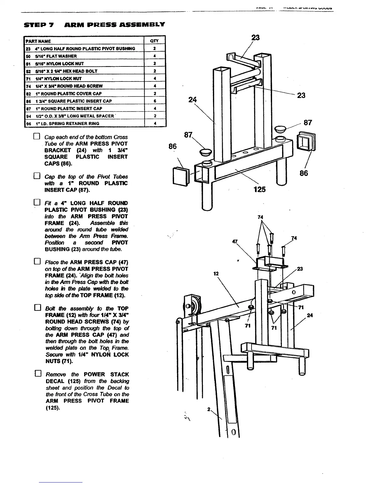 Weider 70493 - Arm Press Assembly