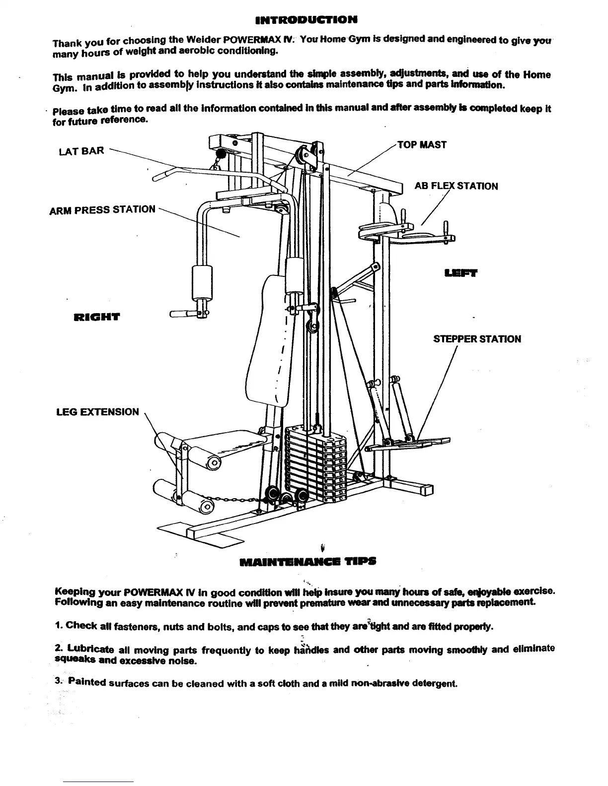 Weider 70493 - Product View and Parts Identification; Maintenance Tips