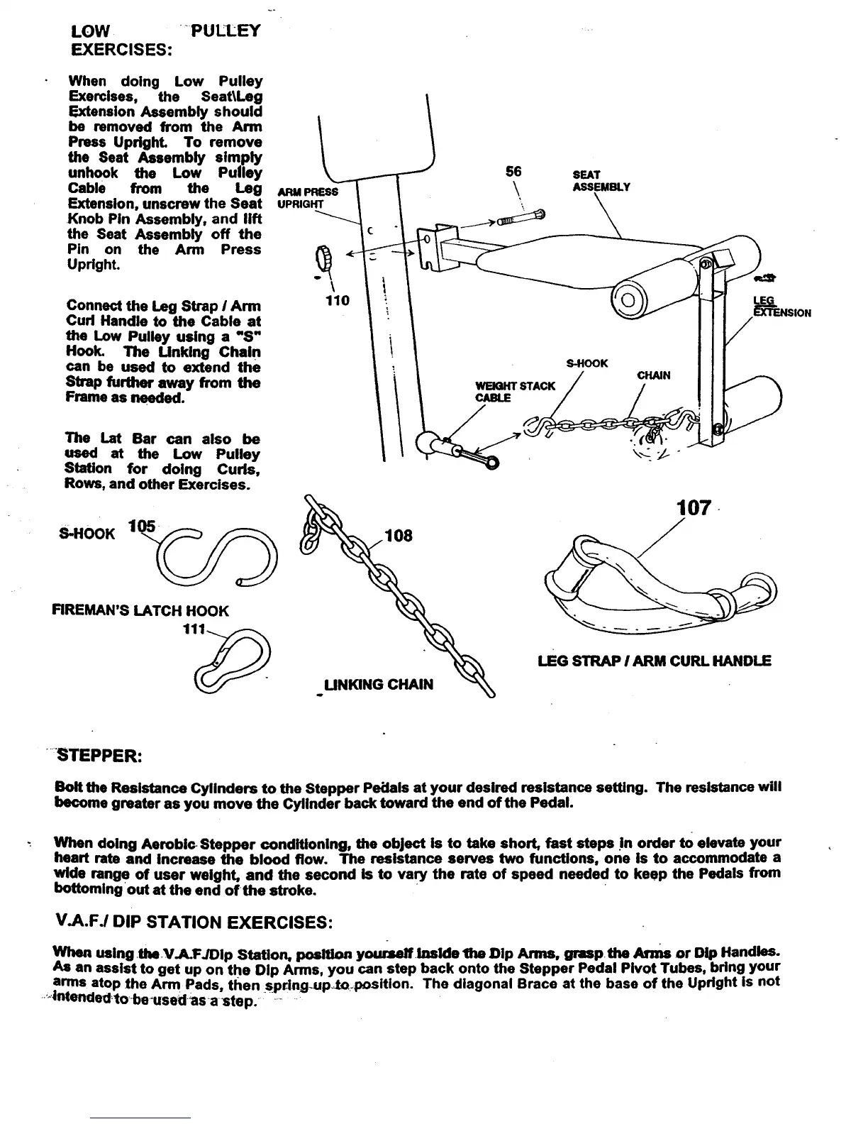 Weider 70493 - Low Pulley Exercises; Stepper; Vaf;Dip Station Exercises