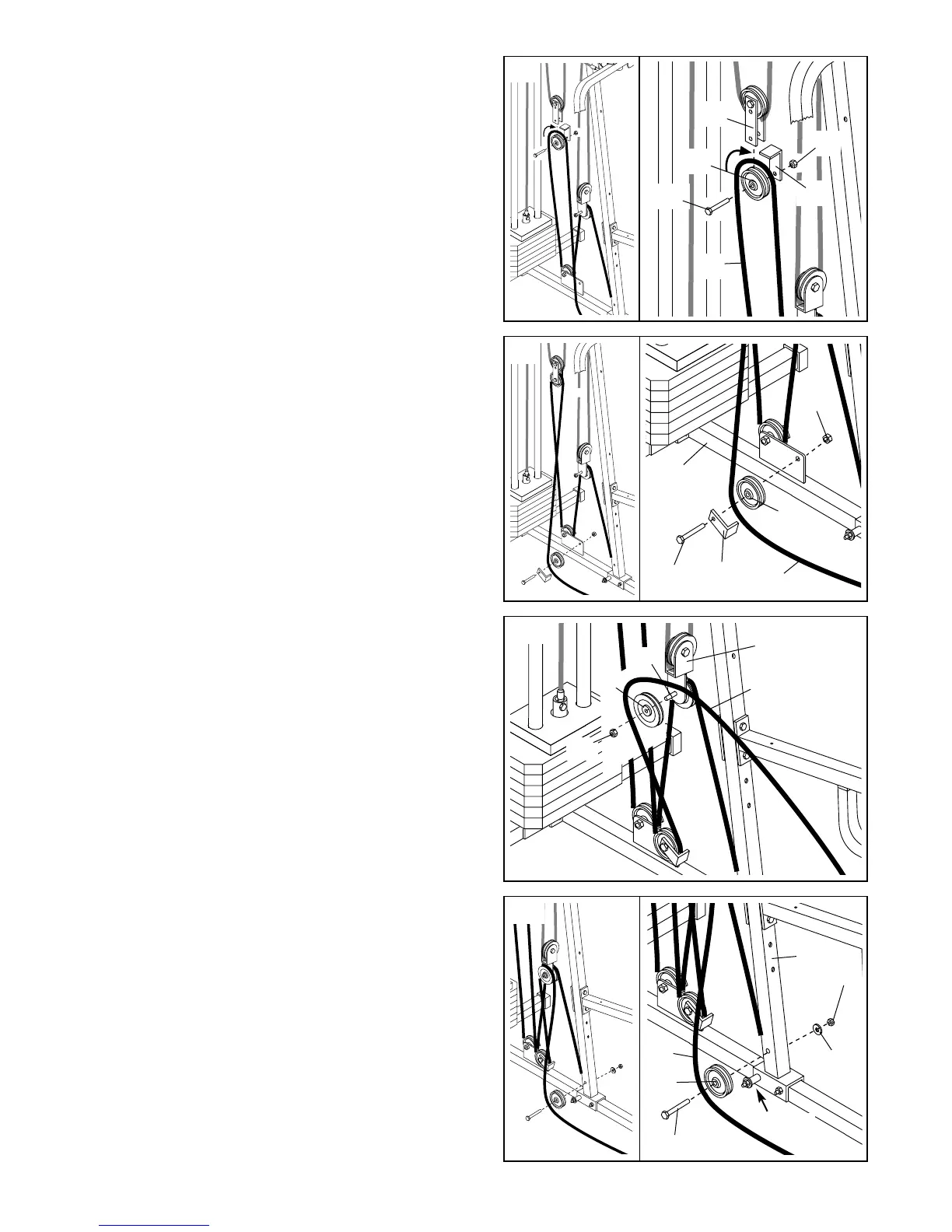 Attach the 3 1/2” Pulley (15) and a Cable Trap (66) to