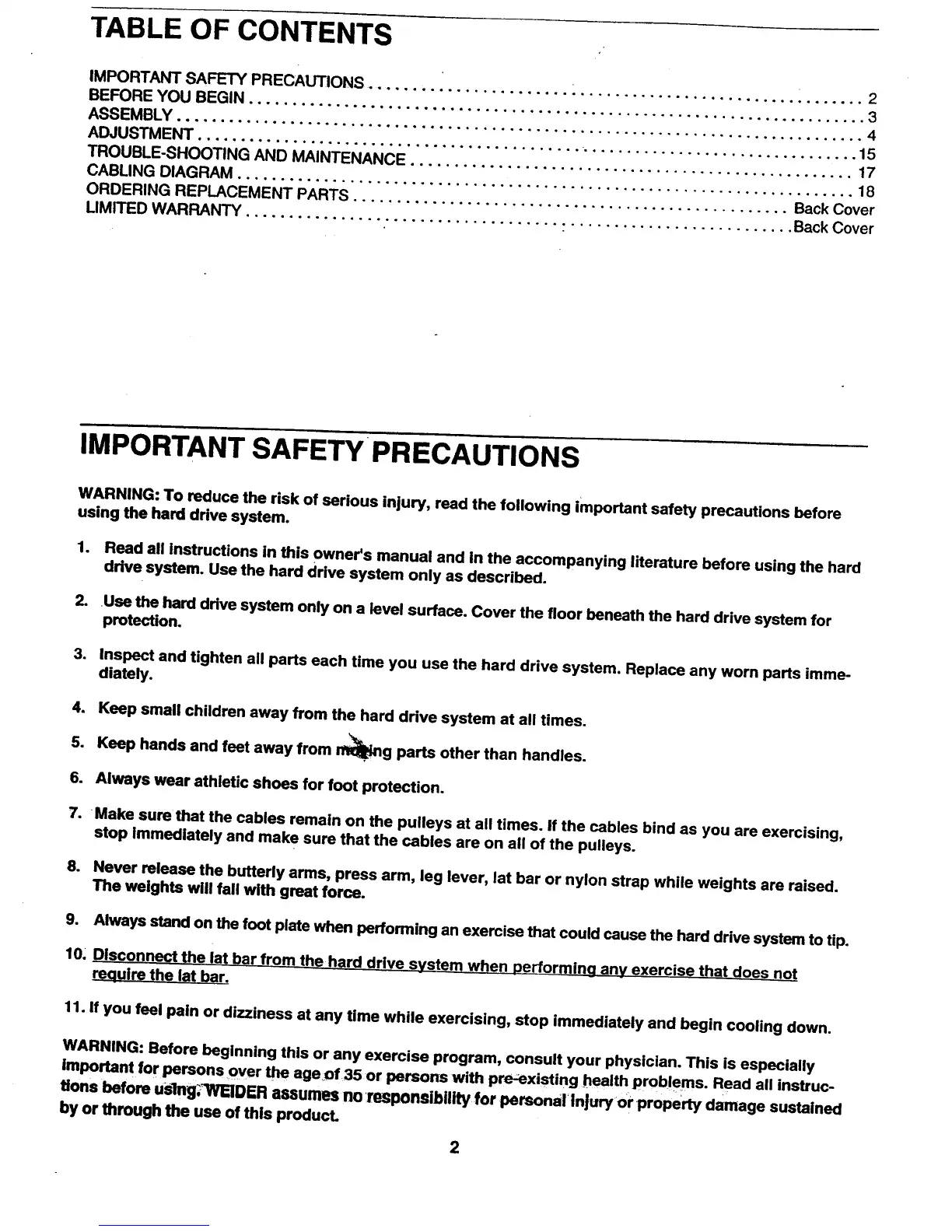 Weider 8300 Hard Drive - IMPORTANT SAFETY PRECAUTIONS; General Safety Guidelines