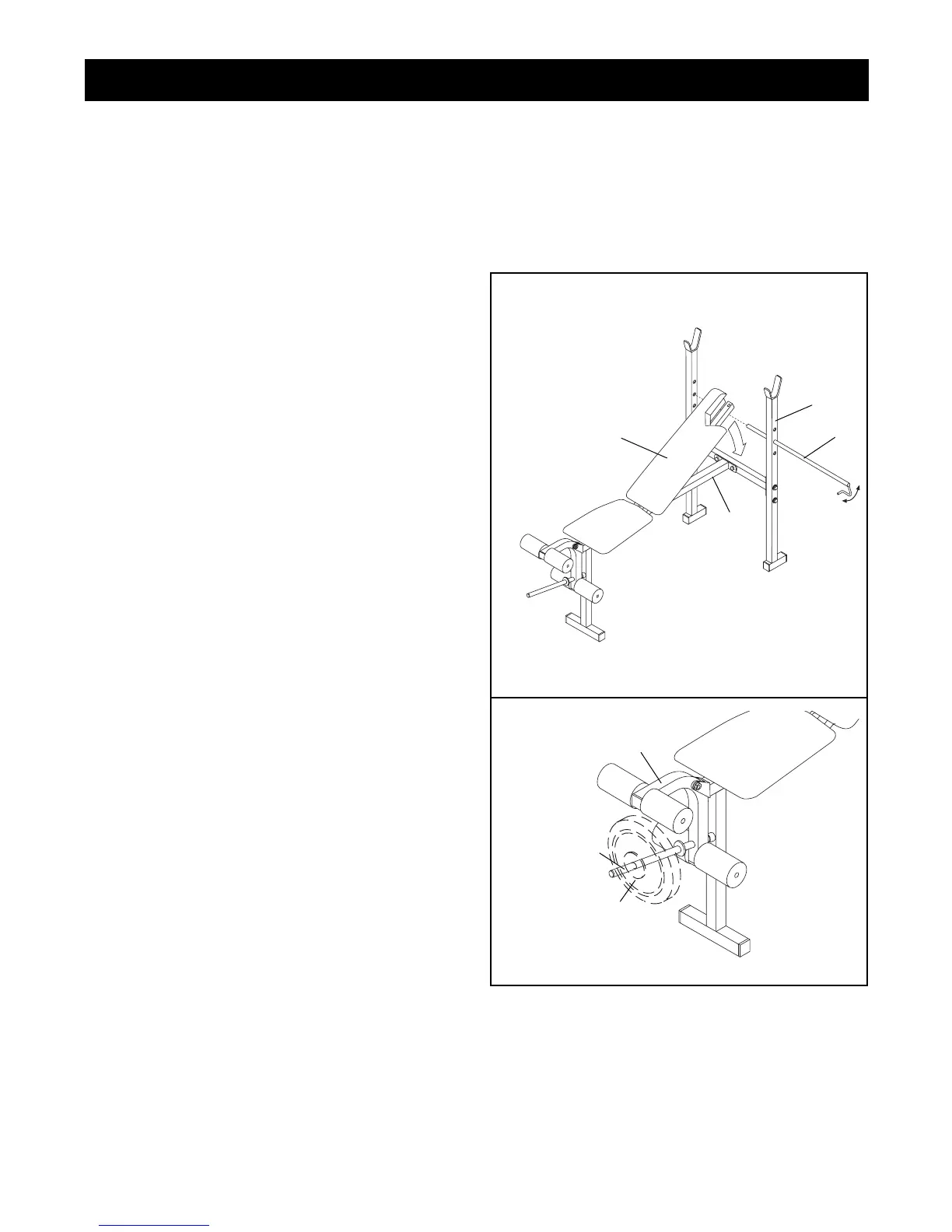 The weight bench is designed to be used with your own weight set (not included). The steps below explain how