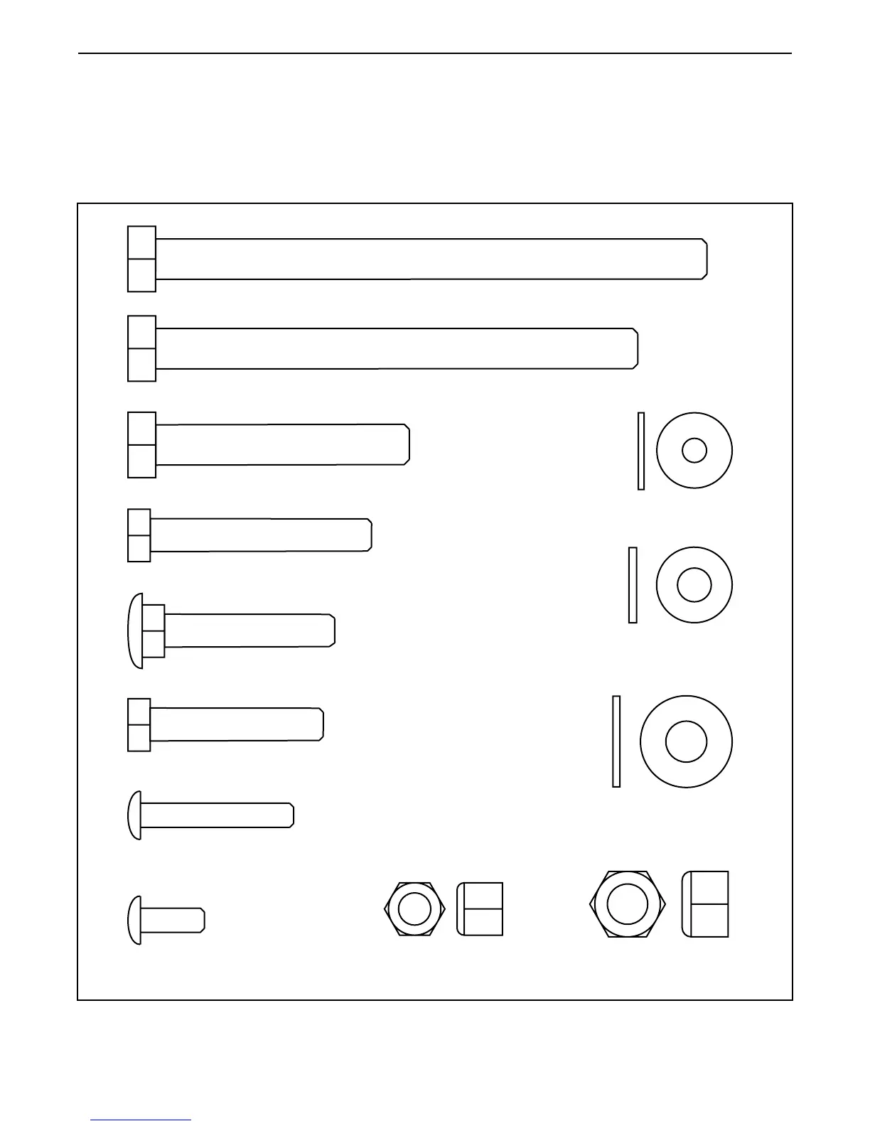This chart is provided to help you identify the small parts used in assembly. The number in parenthesis below