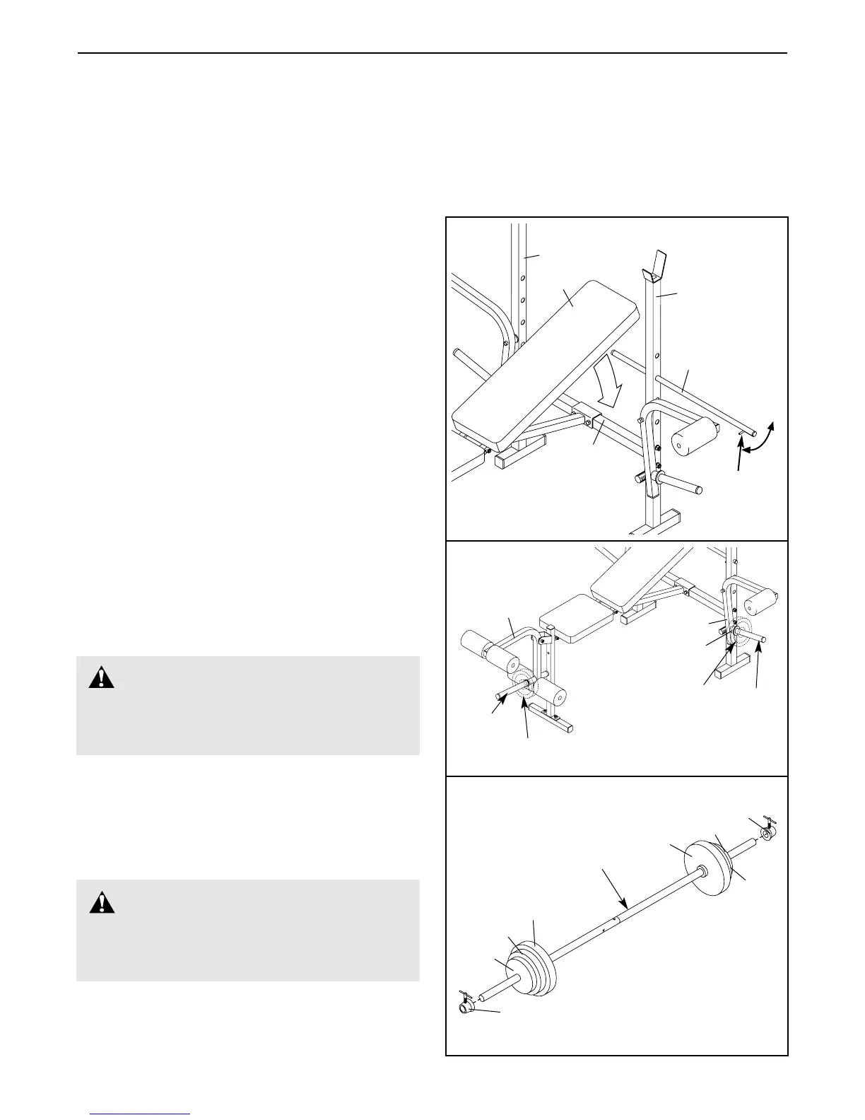 Make sure all parts are properly tightened each time the weight bench is used. Replace any worn parts immediately.