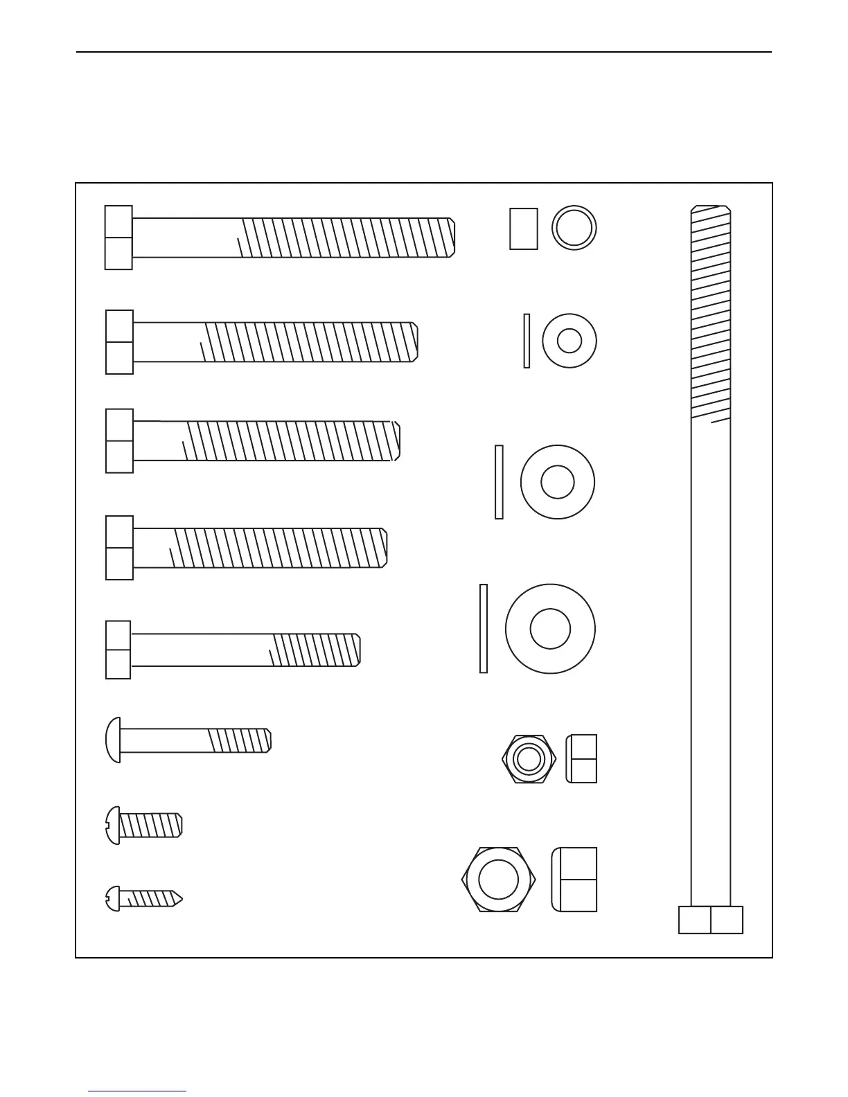 This chart is provided to help you identify the small parts used in assembly. The number in parenthesis below