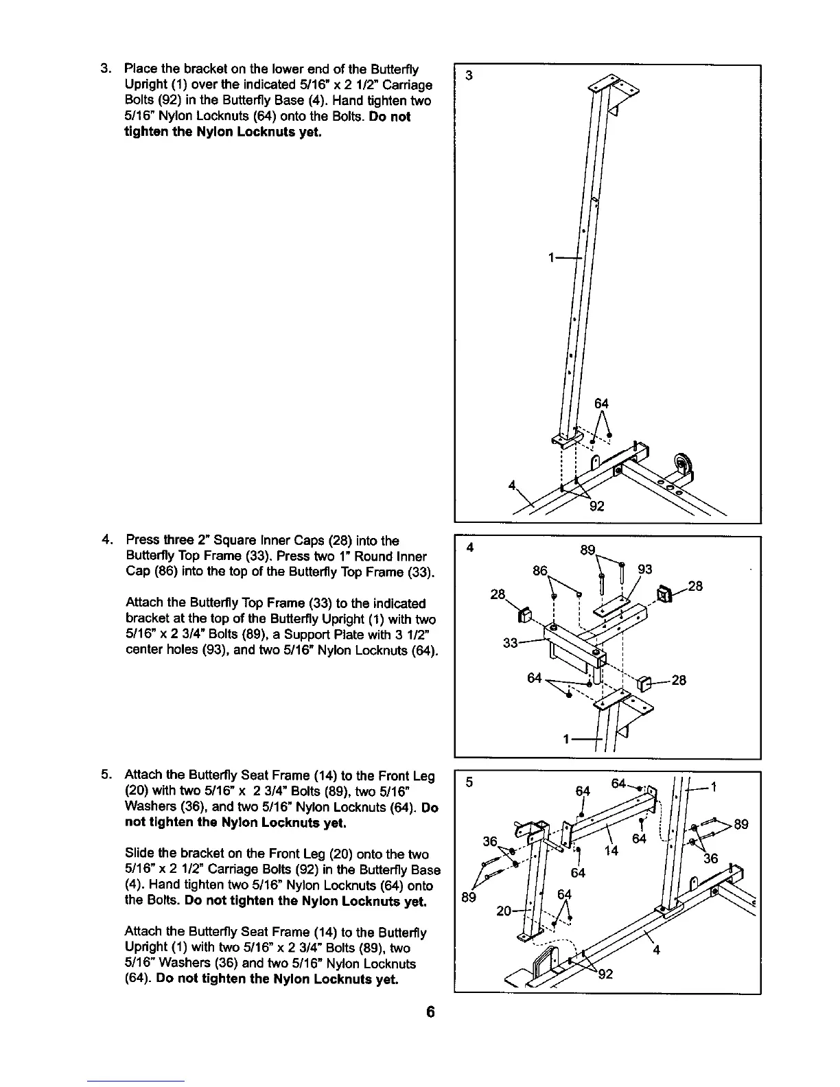 5/16" Nylon Locknuts (64) onto the Bolts. Do not