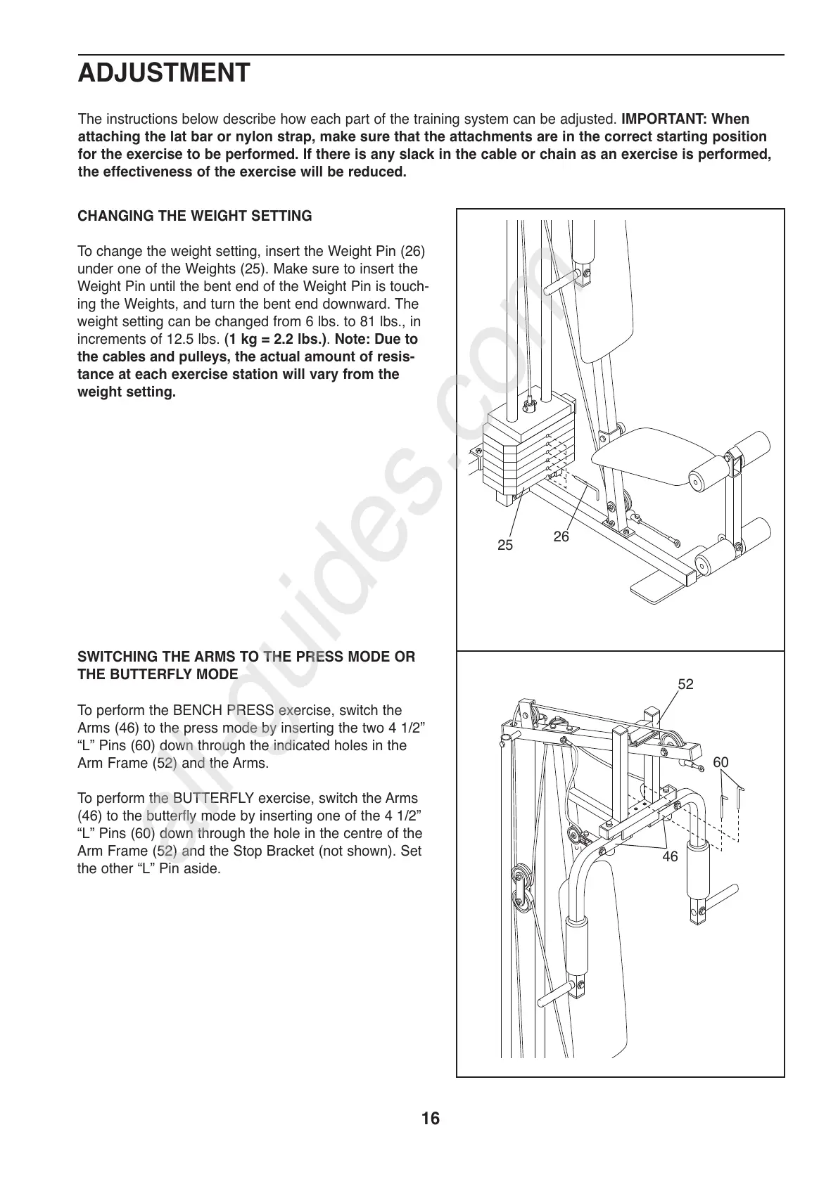 The instructions below describe how each part of the training system can be adjusted. IMPORTANT: When