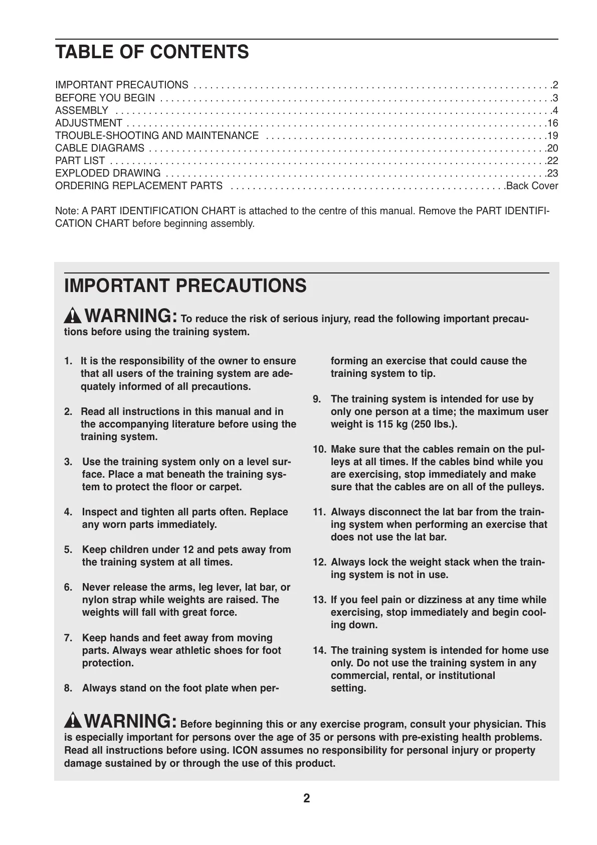 Read all instructions before using. ICON assumes no responsibility for personal injury or property