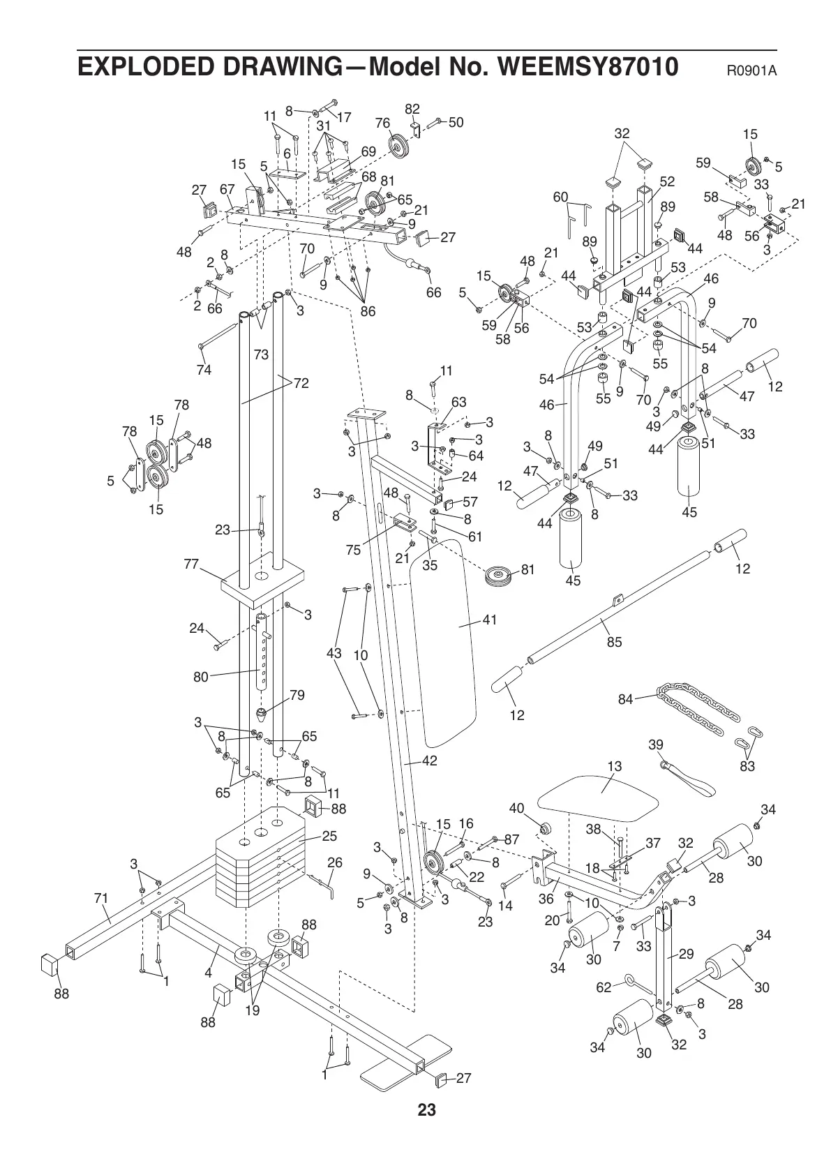 Weider 8507 - Exploded View Assembly Guide; Visual Breakdown of Components