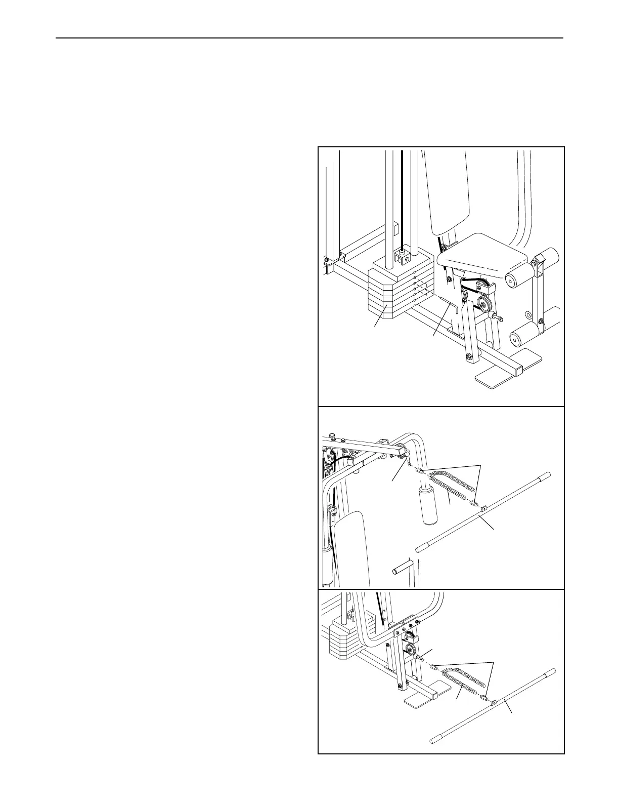 The instructions below describe how each part of the weight system can be adjusted. Refer to the exercise
