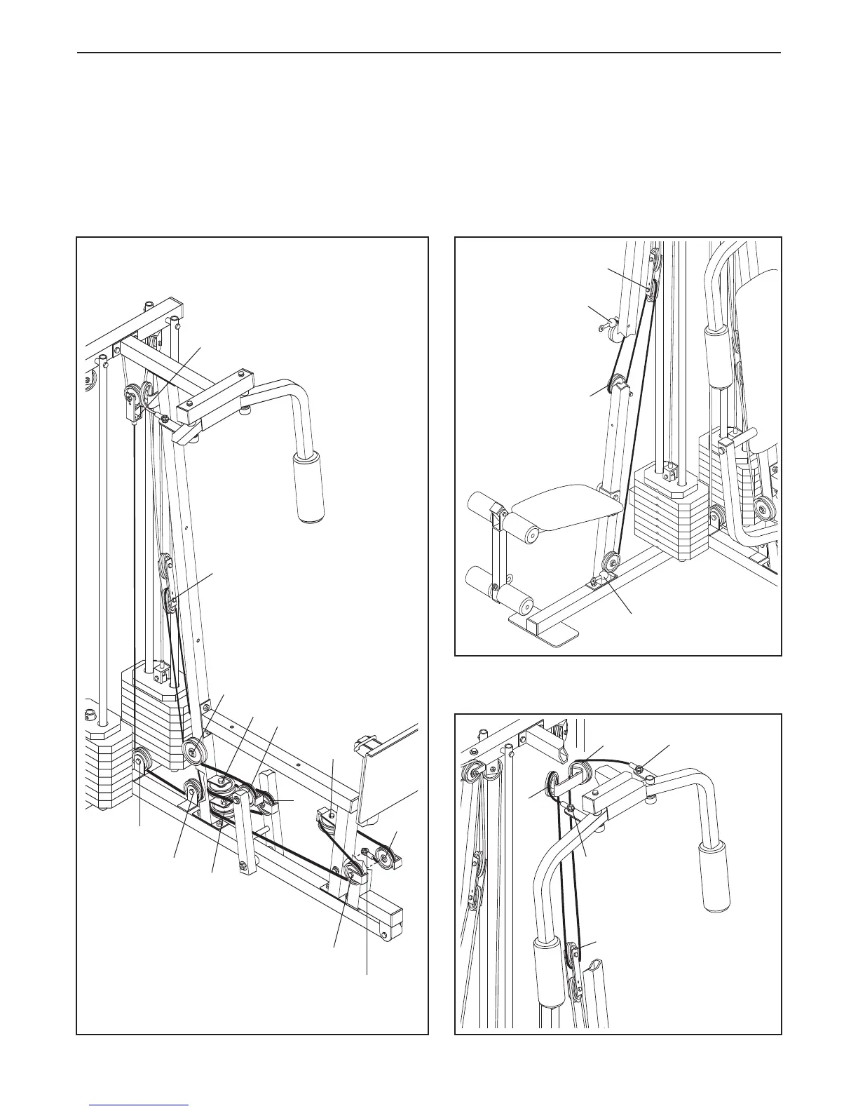 The cable diagrams on this page and the next page show the proper routing of the High Cable (85), the Low