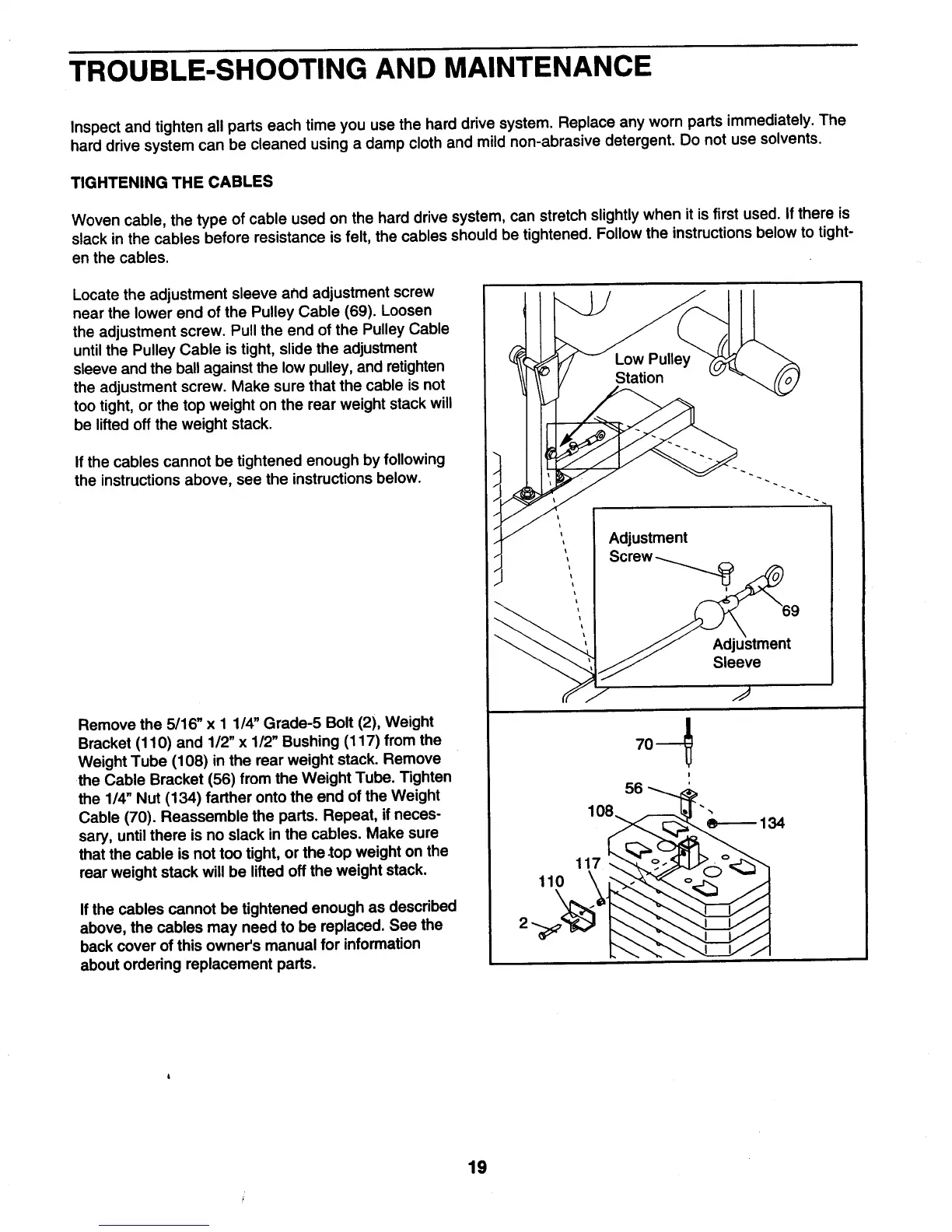 Weider 8650hard Drive Sys - Troubleshooting and Maintenance; Tightening the Cables