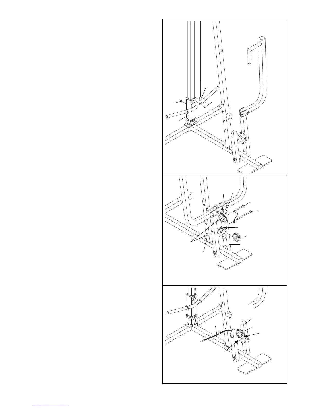 17. Attach a 90mm Pulley (15) and a Cable Trap (66)