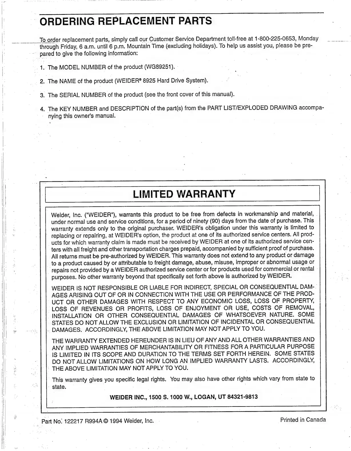 ("WEIDER"),