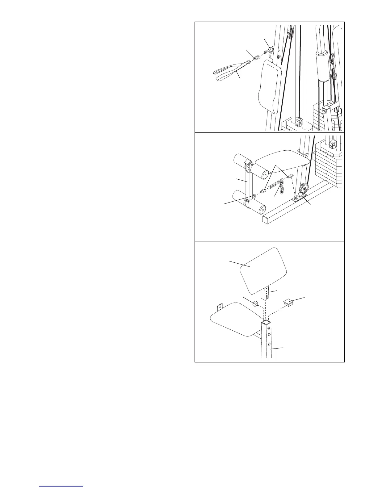 Attach the Ab Strap (35) to the Ab Cable (85) at the ab