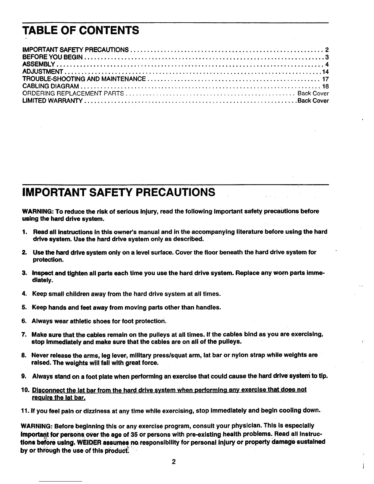 Weider 9350hard Drive Sys - Page 2