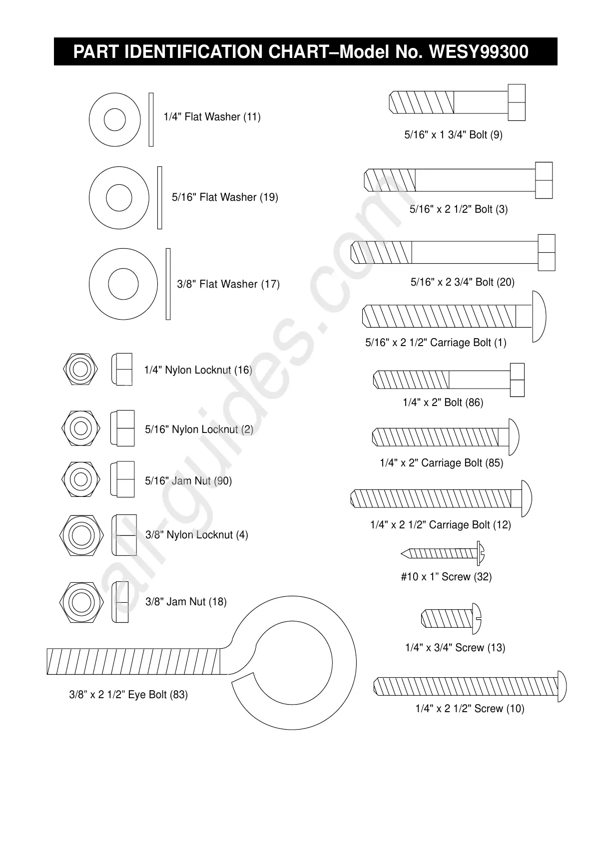 PART IDENTIFICATION CHART–Model No. WESY99300