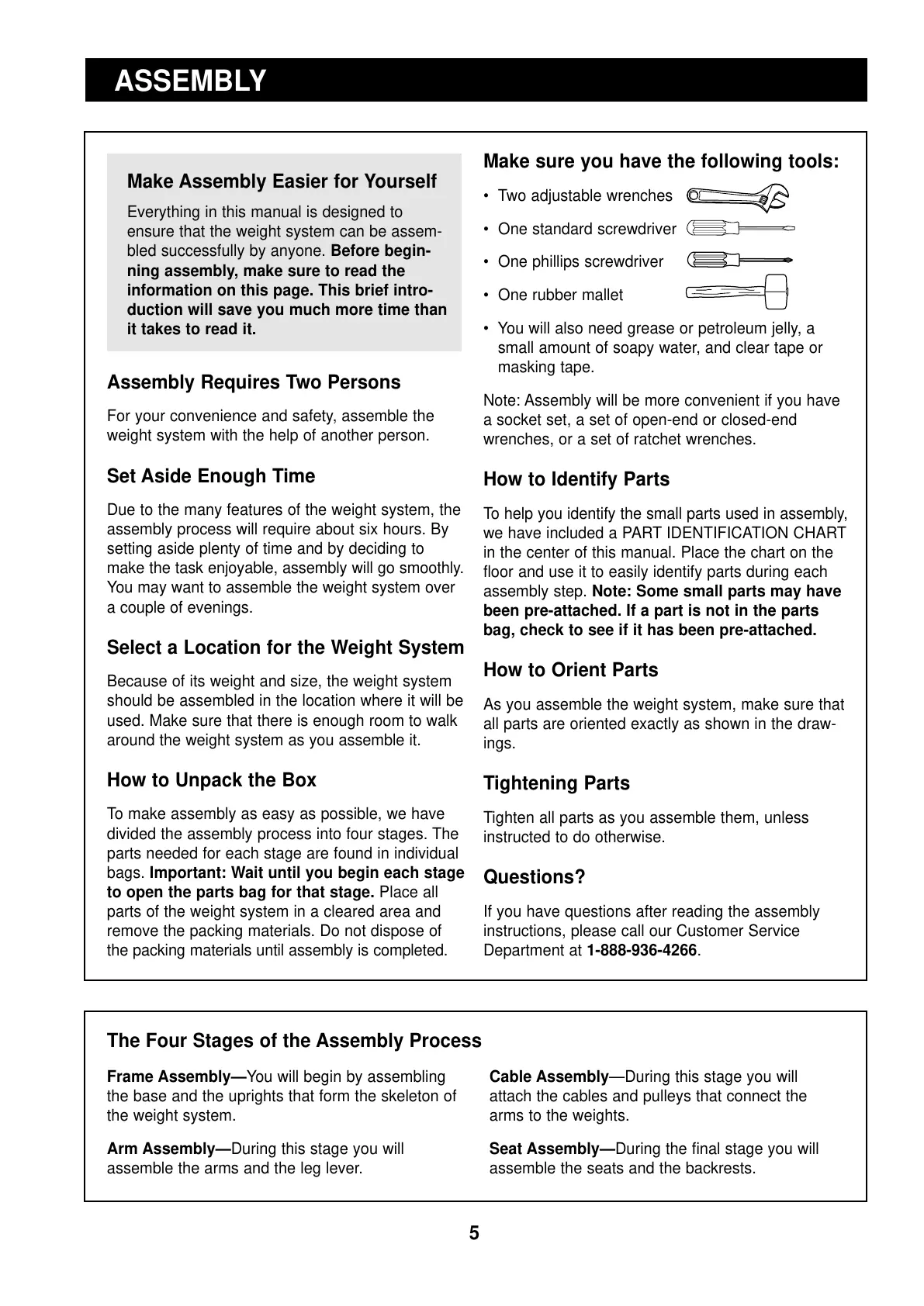 ensure that the weight system can be assem-