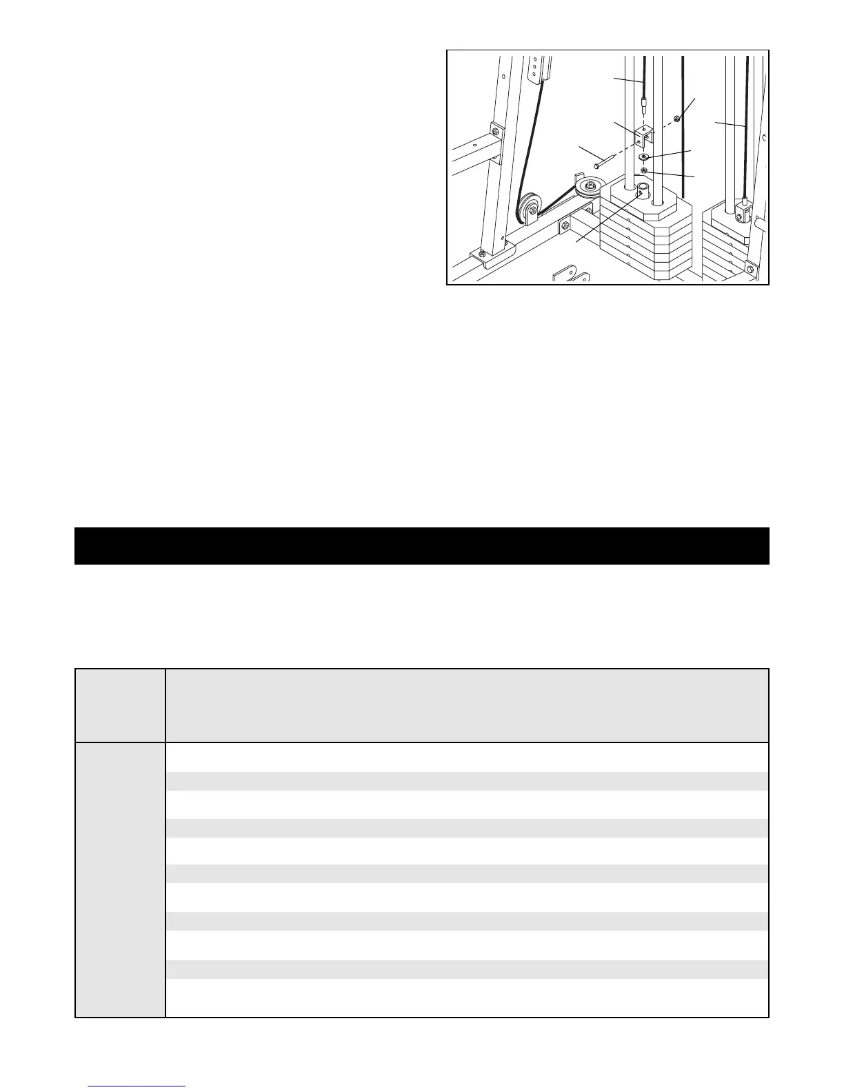 The chart below shows the approximate weight resistance at each exercise station. “Top” refers to the 6 lb. top