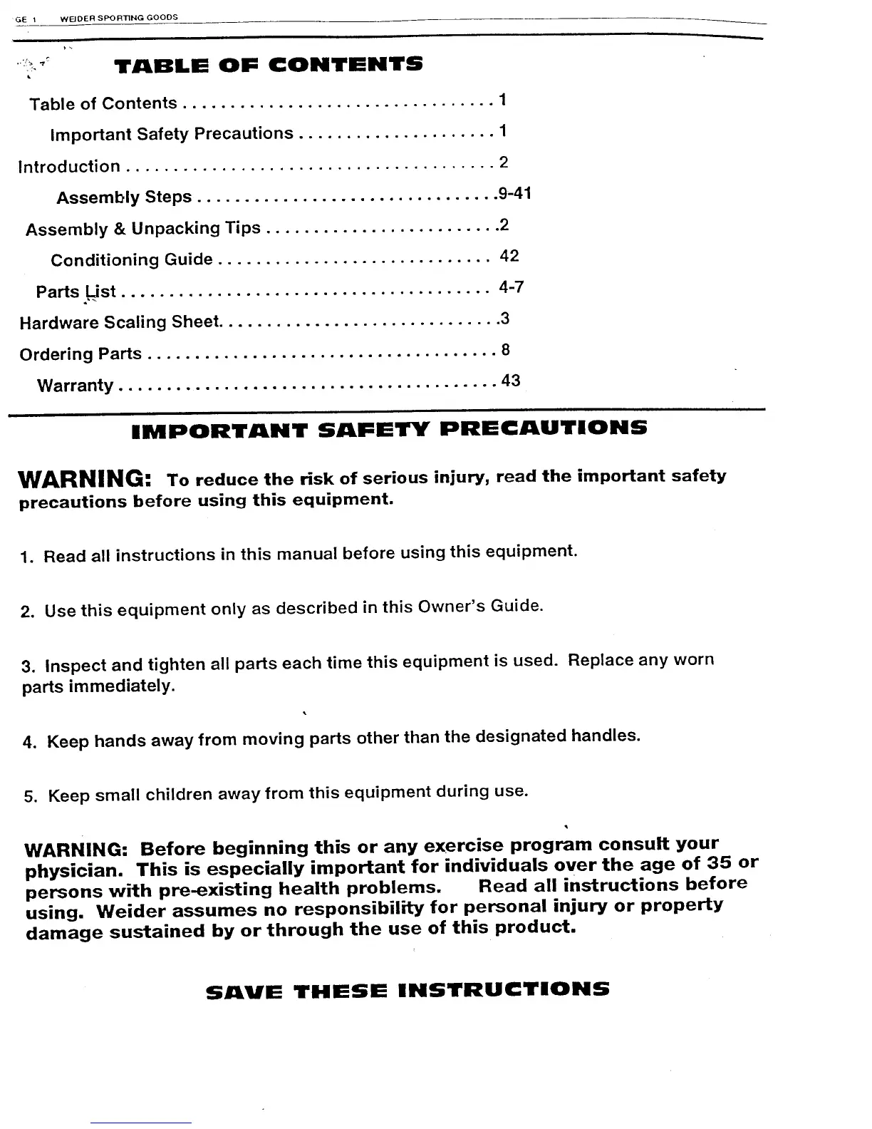 Weider Body Blaster Force 4 - Important Safety Precautions; General Safety Guidelines for Equipment Use