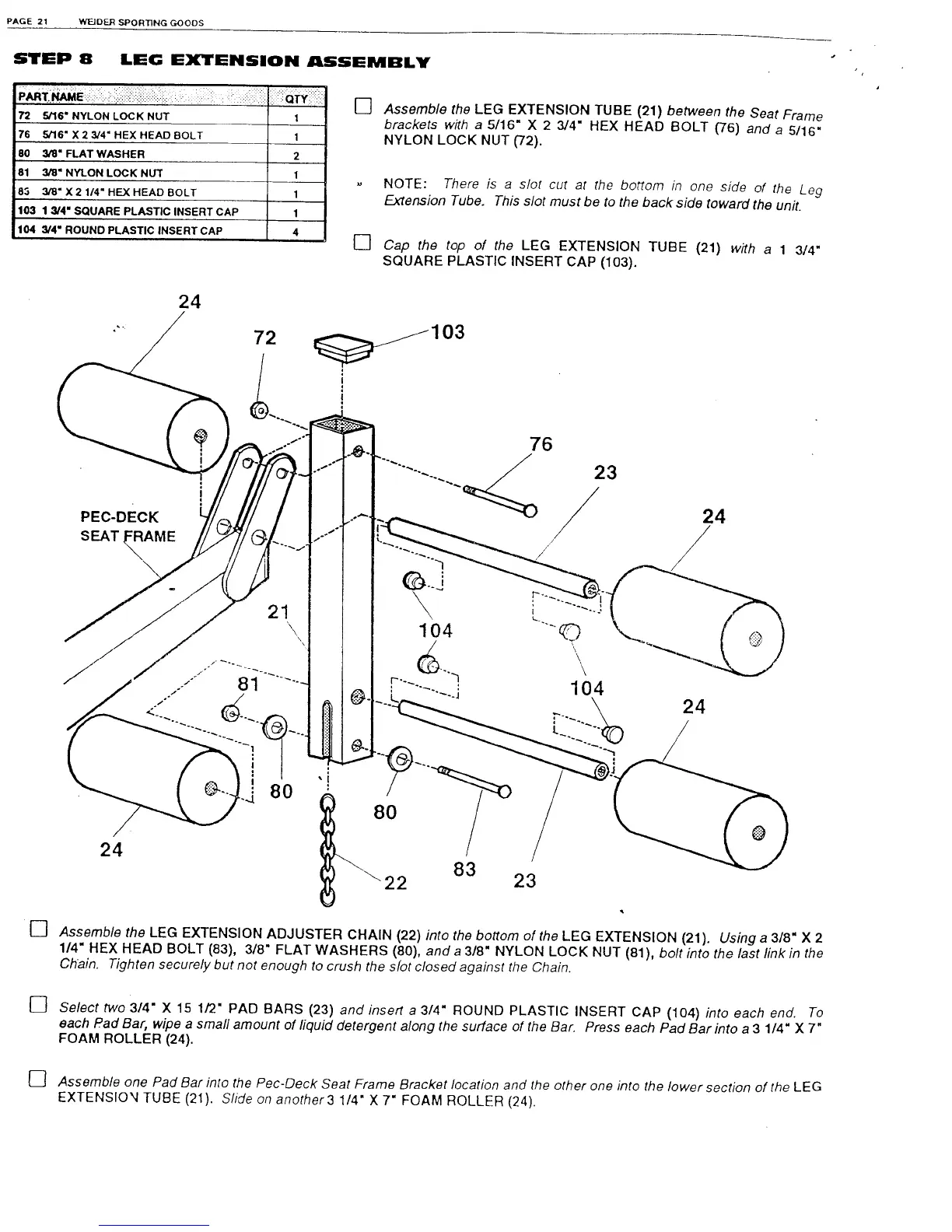 Weider Body Blaster Force 4 - Step 8: Leg Extension Assembly