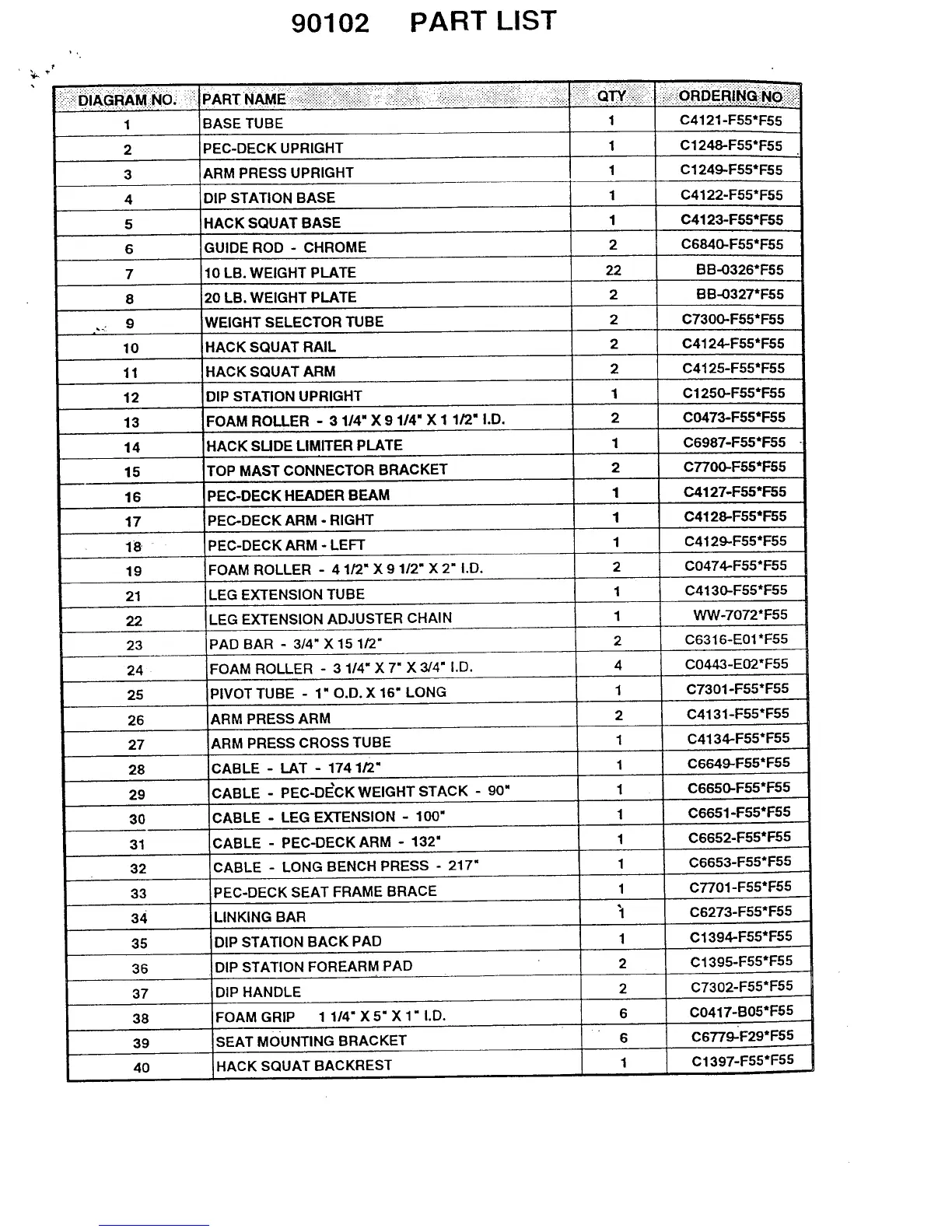 Weider Body Blaster Force 4 - Complete Parts List; Component Identification and Ordering Numbers