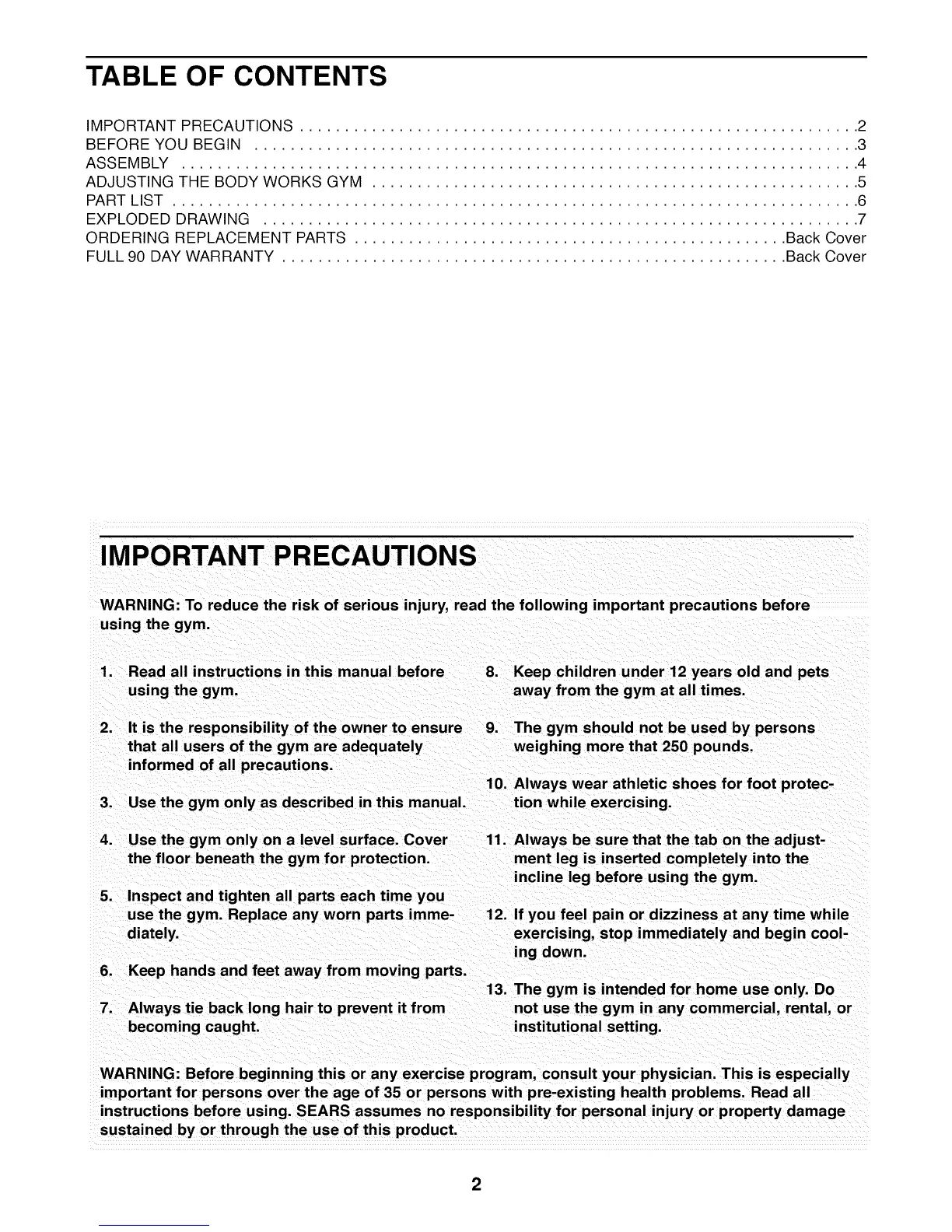 3. Use the gym only as described in this manual, tion while exercising.