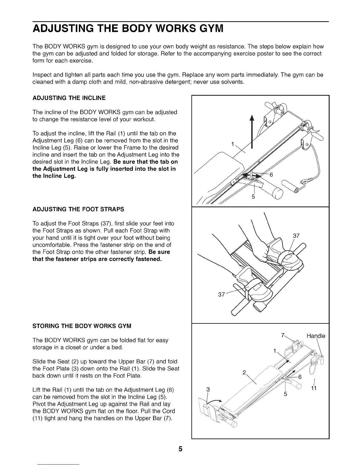 The BODY WORKS gym is designed to use your own body weight as resistance. The steps below explain how
