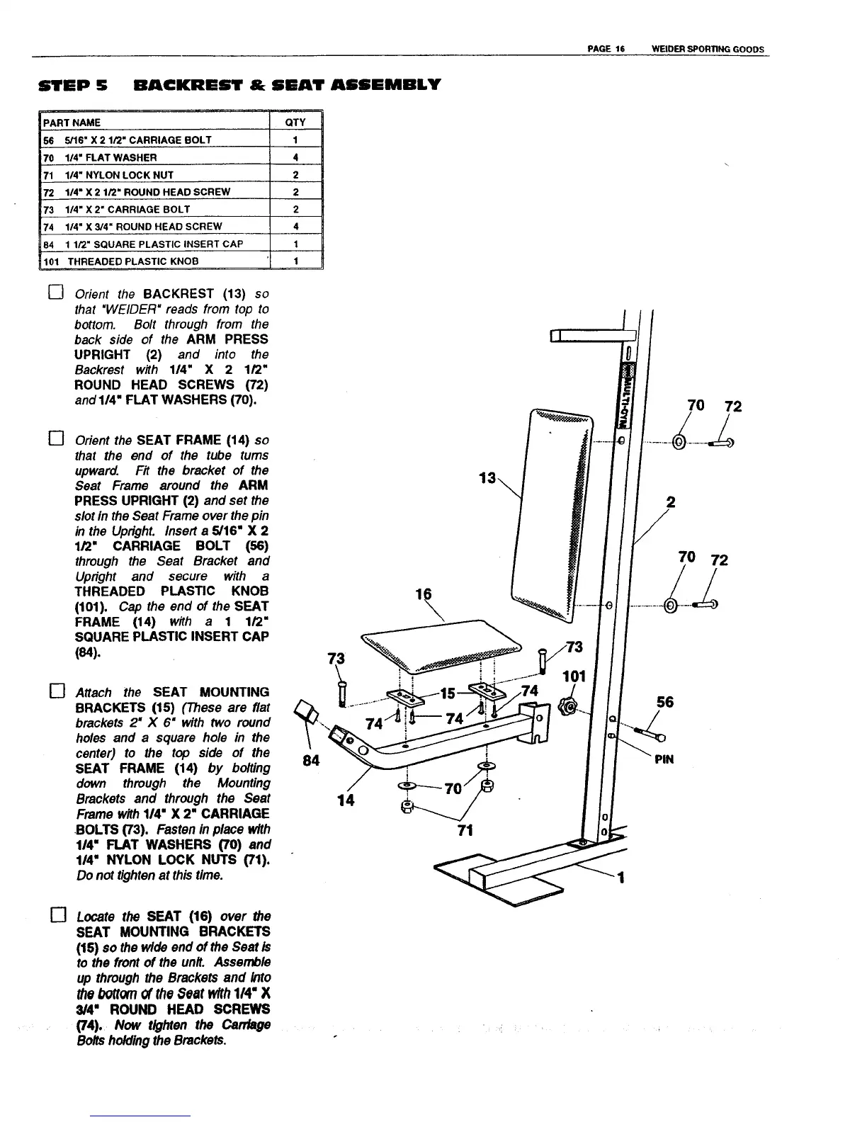 Weider Cjxt3 Cross Trainer Master - STEP 5 BACKREST & SEAT ASSEMBLY