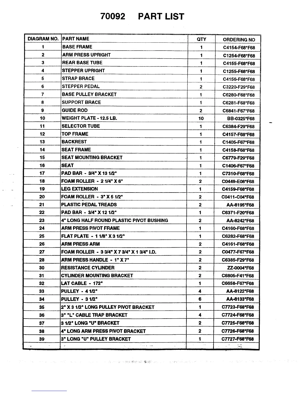 Weider Cjxt3 Cross Trainer Master - PART LIST